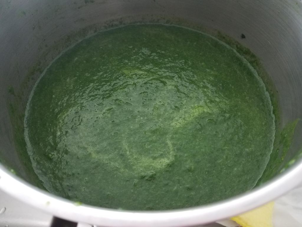 Place spinach and 1 cup water in a saucepan. Cover and cook the spinach till wilted in medium-high heat. It should take around 4-5 minutes to wilt. Puree mixture in a blender. Set aside. Be careful while blending hot food!