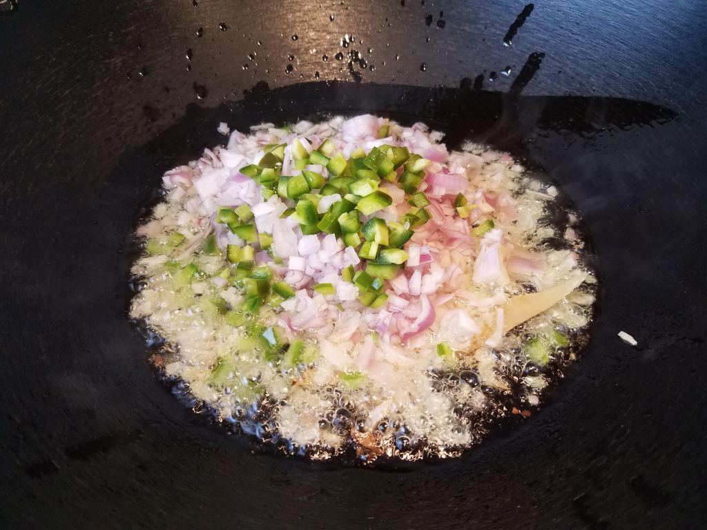 Add onions and jalapenos. Fry for a couple of minutes in medium heat.