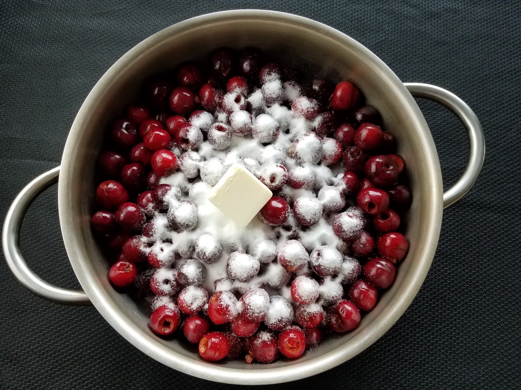 Combine cherries, sugar, and butter in a large saucepan.