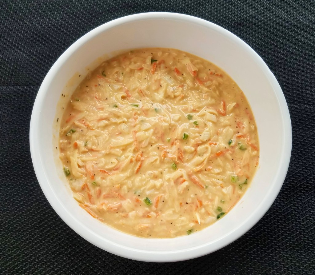 Add the potatoes, carrots, yellow onion, garlic, and jalapeno to the batter. Combine well.