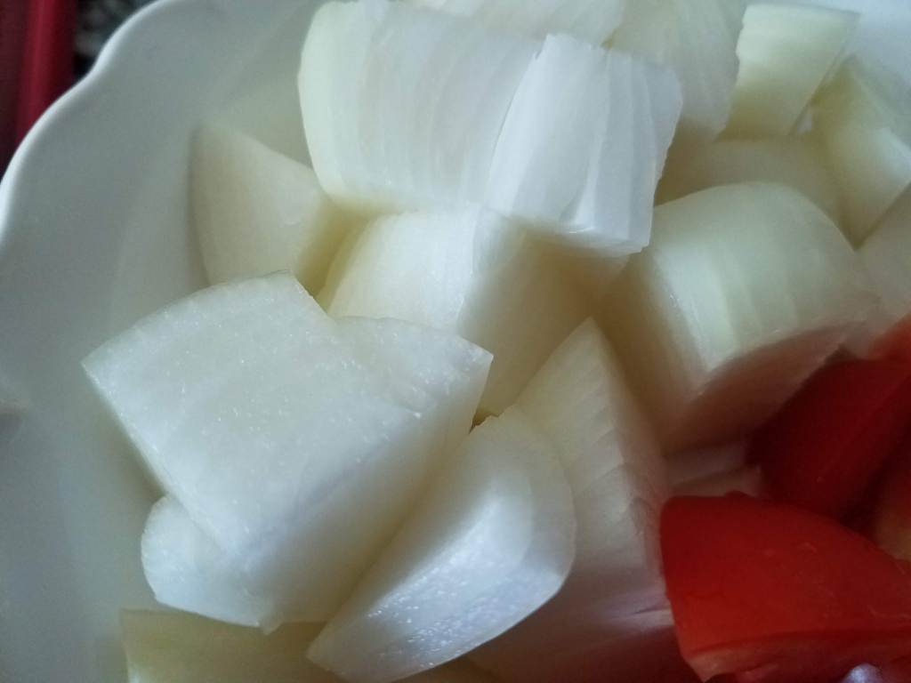 - 1 cup yellow onion, 3/4 inch dice