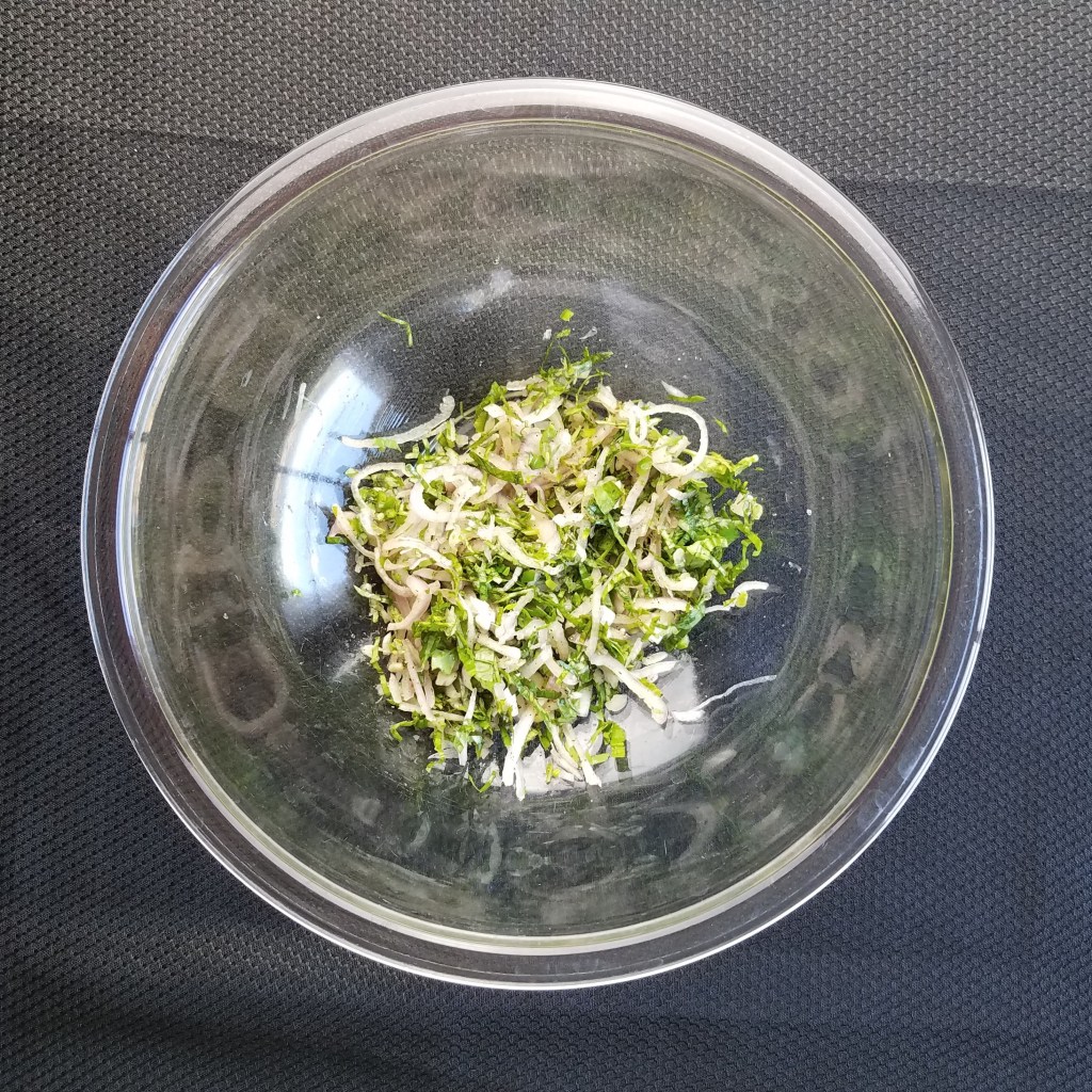 Put the shallots, basil, jalapeno, and pepper in a large bowl. Use your hand to mix all the ingredients well and break up the shallots.