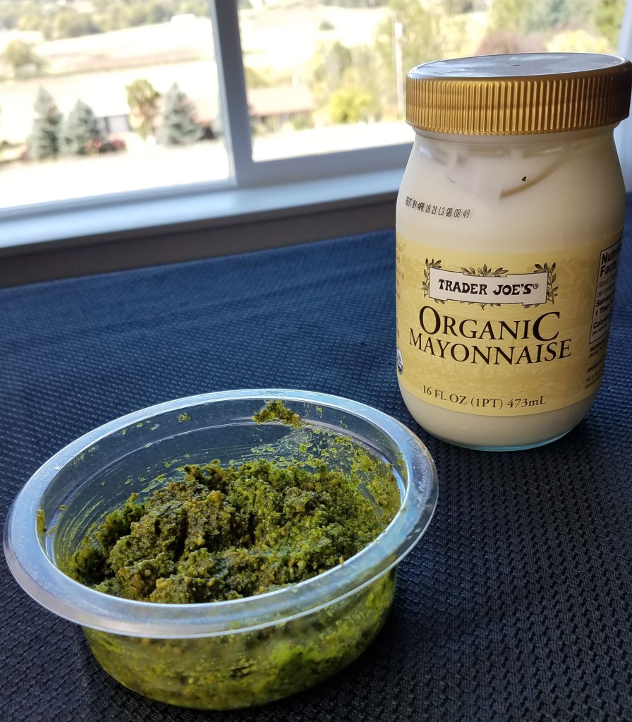 Whisk all creamy basil pesto ingredients in a bowl. Chill until you’re ready to serve.
