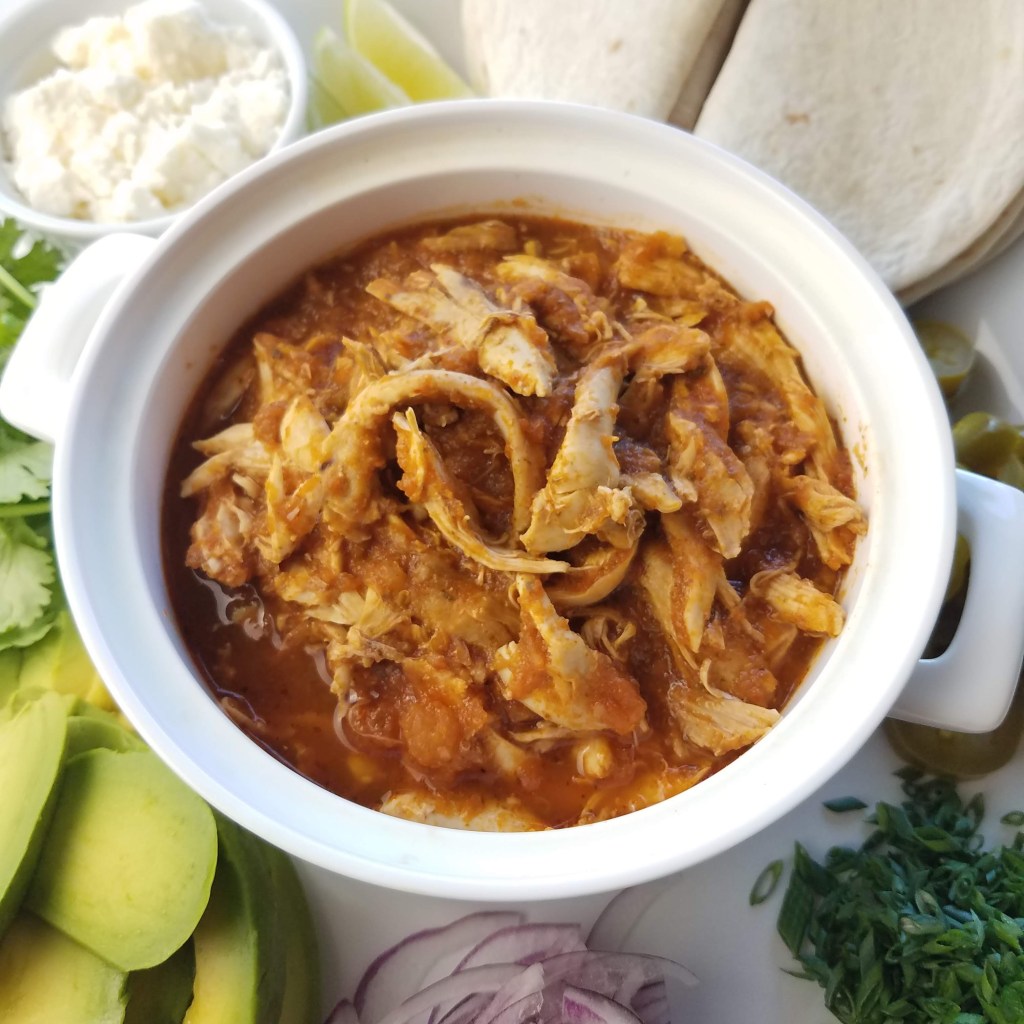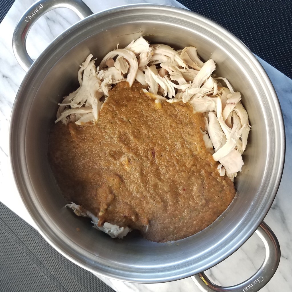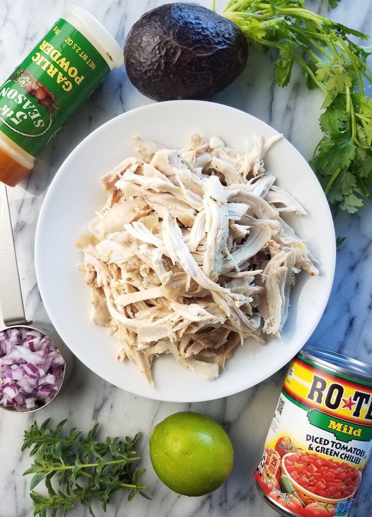 Chicken tinga was a popular option in a taco bar at the restaurant I used to work in. I like to make chicken tinga by shredding the roasted chicken and then simmering it with a sauce I make out of canned Rotel tomatoes, onions, and a variety of spices. The ready-made chicken and tomatoes save a lot of time.