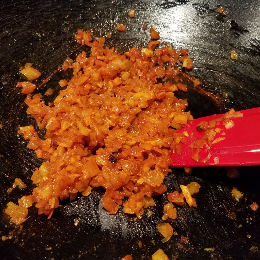 If you can’t find the refrito paste, you might add a couple garlic cloves, minced and a teaspoon of Annatto powder when you fry the onions. You can also find a substitute for red palm oil if you need to.