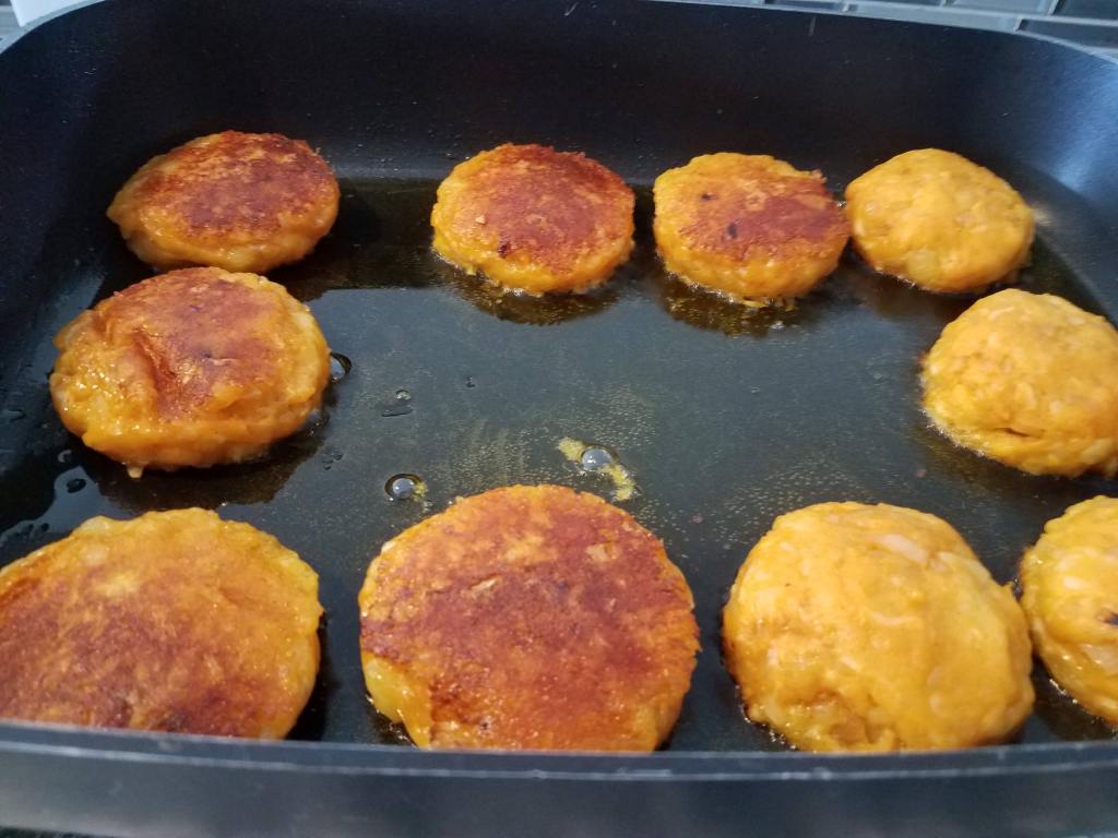 Heat a 1/4 cup oil in a large nonstick frying pan or griddle. Cook potato patties until browned on both sides. Be careful when flipping as the dough is very delicate.