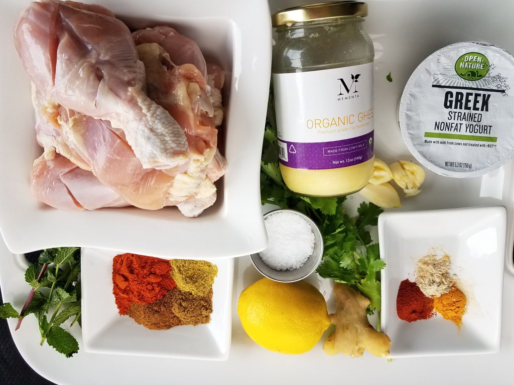 Clean and brush the grill grates with oil or a non-stick cooking spray. Grill chicken pieces for 35 -45 minutes, flipping in between, brushing with melted ghee from time to time. You’ll know when the chicken is done when its juices run clear and its internal temperature is about 175 degrees. The cook time will vary depending on the size of the chicken. Once the chicken is done, rest the pieces for 5-10 minutes before serving.