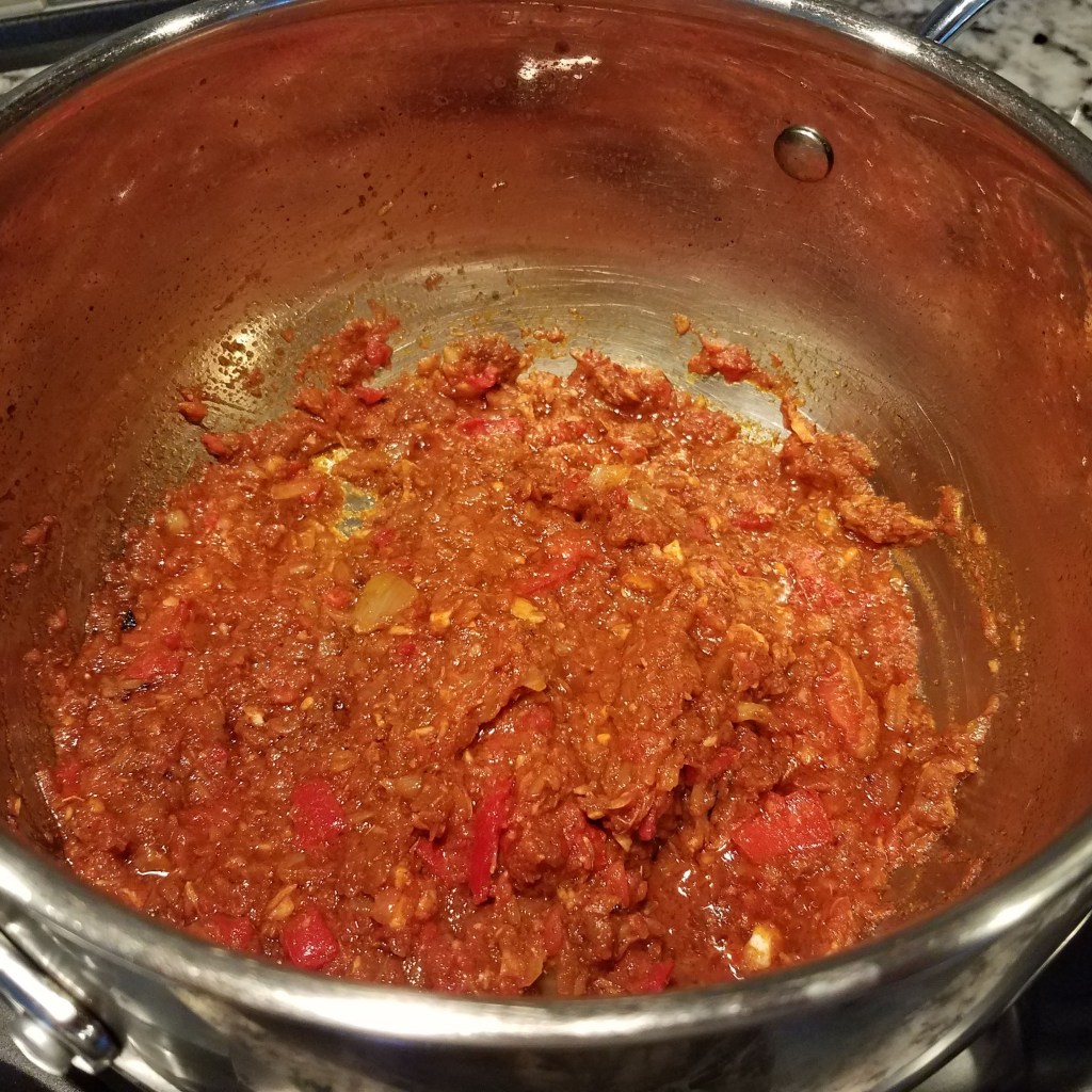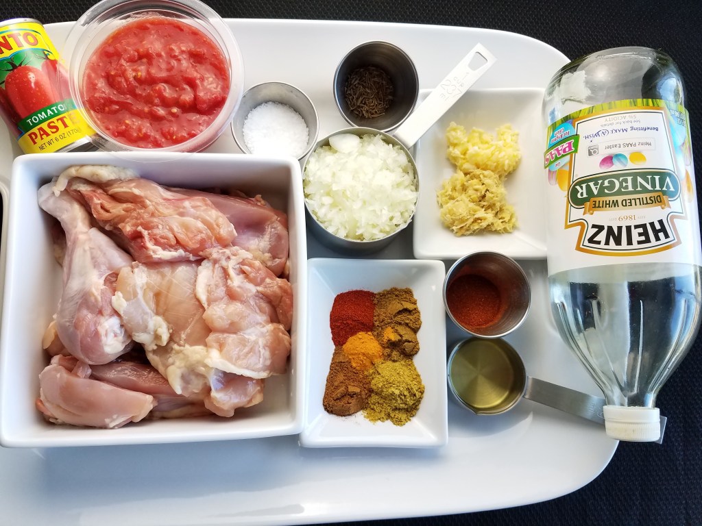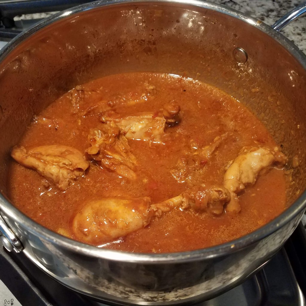 Like most curries the one I present below uses a complex combination of spices and herbs including turmeric, cumin, coriander, ginger, and chilies. The red color comes from red chili, tomato, and tomato paste. My mom wouldn’t put tomato paste in the curry as processed foods like this were not available. I find that adding a limited amount of canned tomato paste adds some depth and texture.