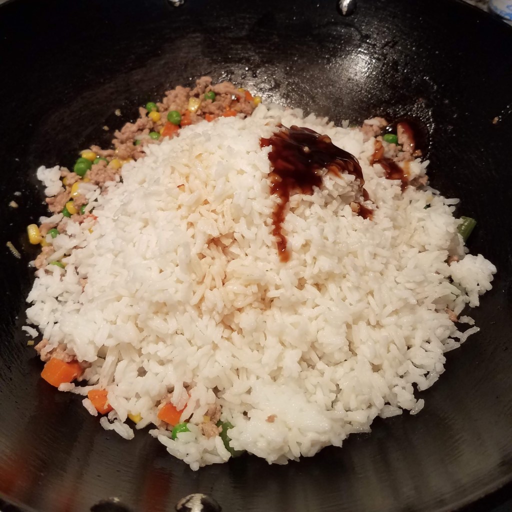 Cold rice — either white or brown — is ideal for making fried rice because it’s had time to dry out as sits in the refrigerator. This means less is likely to stick together or get gummy when stir frying. If the rice is clumped together, make sure to break it up before adding it to the wok or pan.
