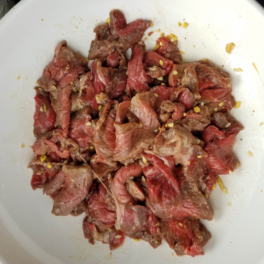 In a medium bowl, mix together all beef marinade ingredients until fully combined. Marinate for 20-30 minutes.
