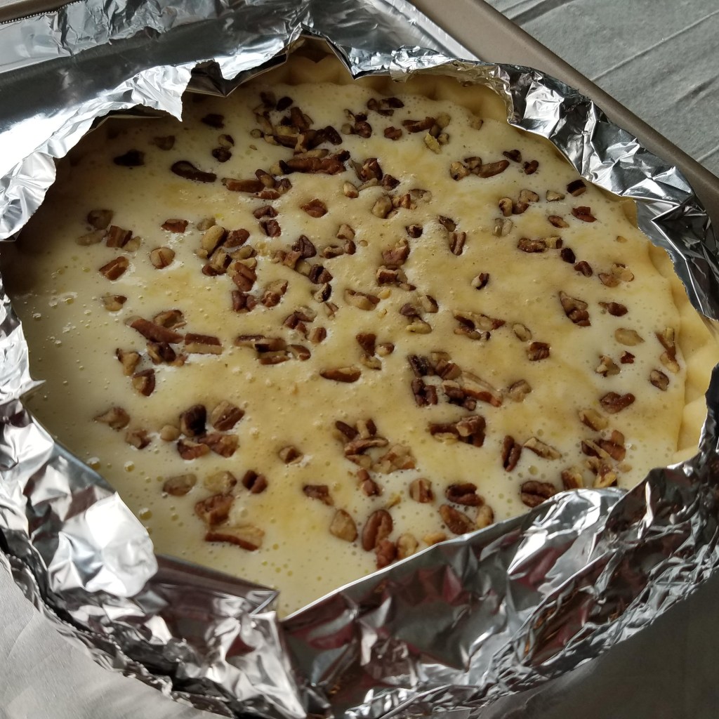Pumpkin pie and pecan pie are favorites in our house. However, I really like eating cheese cake more than those. Therefore, I decided to try a type of pecan pie that uses cheese cake. It was an interesting experiment that turned out great.