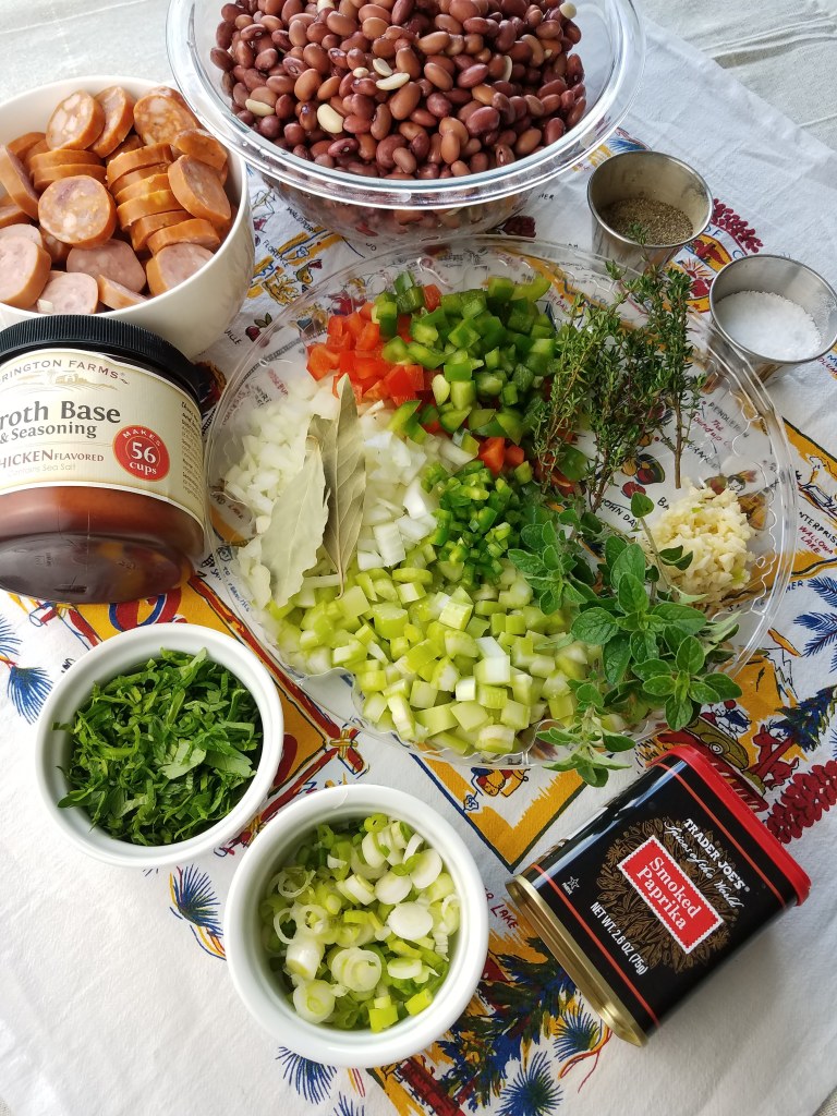 You can make this gluten friendly by using the andouille and kielbasa sausage, which are gluten free. I like to make a big batch of this dish since I am doing all the work — it’s a great dish to save for those days when you don’t feel like cooking. I divide the big batch into small batches and cool them overnight in the refrigerator. Next day I transfer some of the red beans and sausage into a small freezer container and freeze it to enjoy when I get the craving.