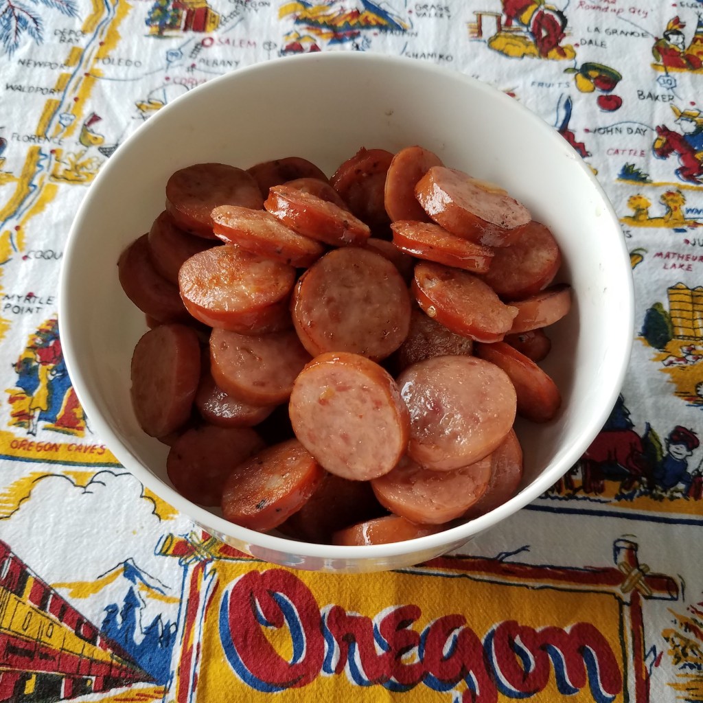 - 7 (oz.) kielbasa sausage, 1/4 inch cut rounds