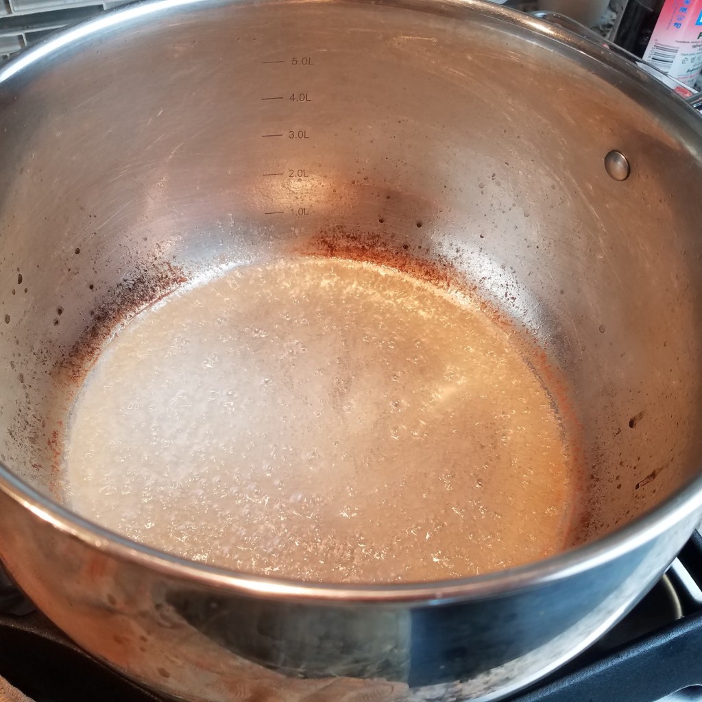 When you open a can of coconut milk, there will be a thick layer of coconut cream on the top of the can. Scrape it out and place it in a wide mouth saucepan.