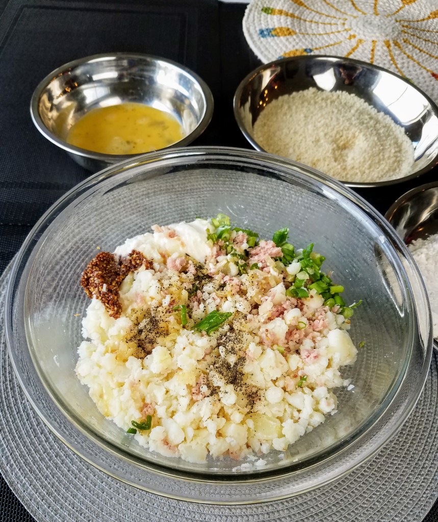 Christmas is a special holiday that l look forward to each year. Often after a big holiday meal I have leftovers such as cooked ham and mashed potatoes. I found myself in this circumstance this year and so wanted something creative to make with them. Yes I could have served the leftovers as is — my family would have been happy that way — but I really wanted to try out the recipe that I present to you today.