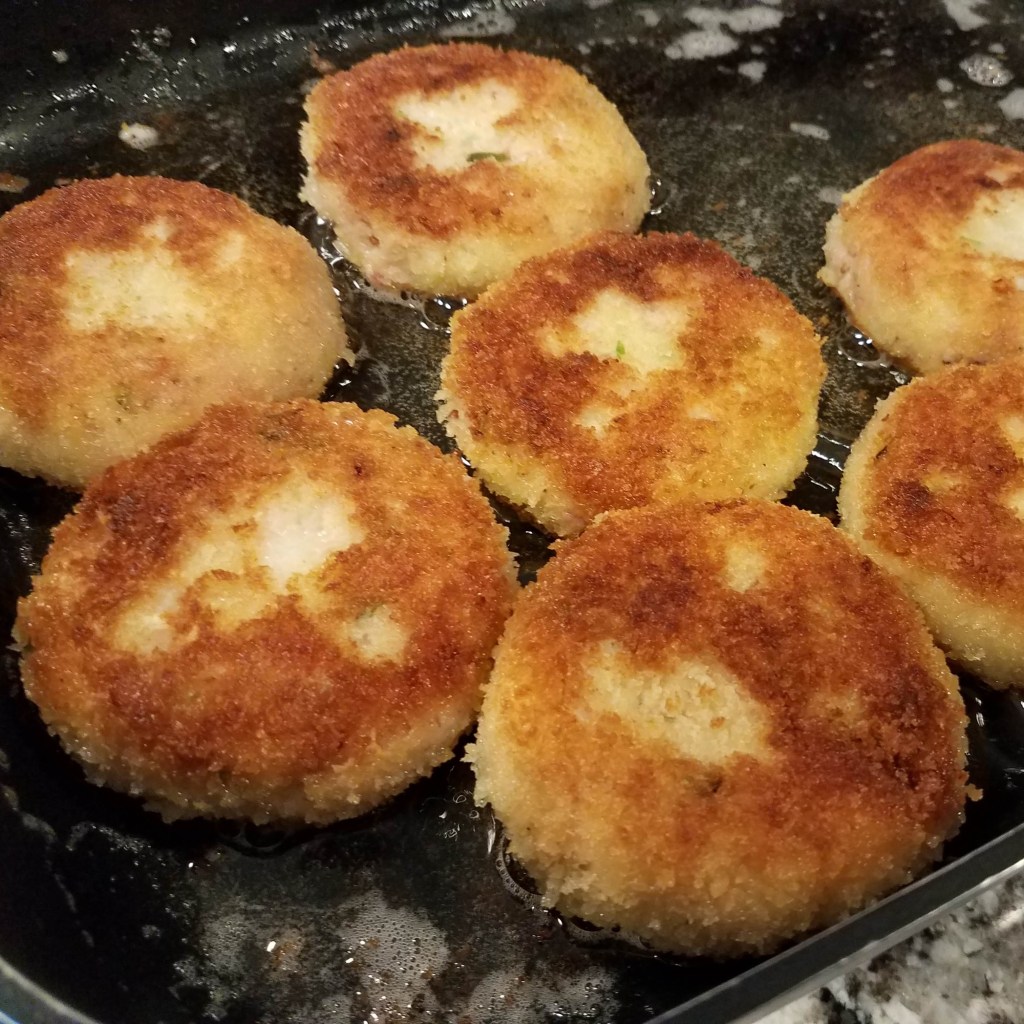Heat 1 cup of oil in an electric or large heavy skillet over moderately high heat. Fry the cakes, turning gently once until golden brown on both sides. Transfer the cooked cakes to paper towel lined plate to drain.