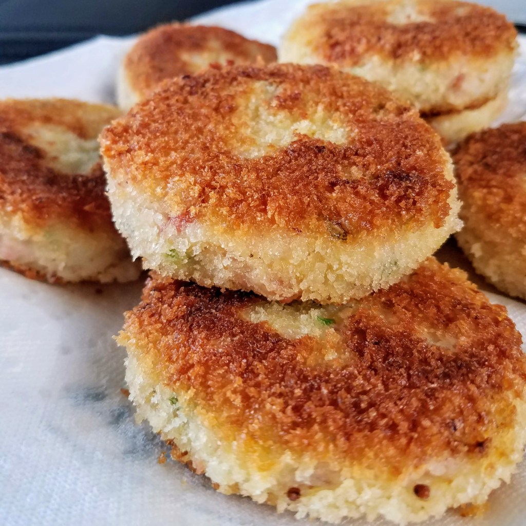 These ham and potato cakes are just one type of many small dishes that I like to create instead of a formal meal. Other small dishes that might pair well with this recipe are a cheese and meat platter, Korean pancakes, or blueberry arugula salad.