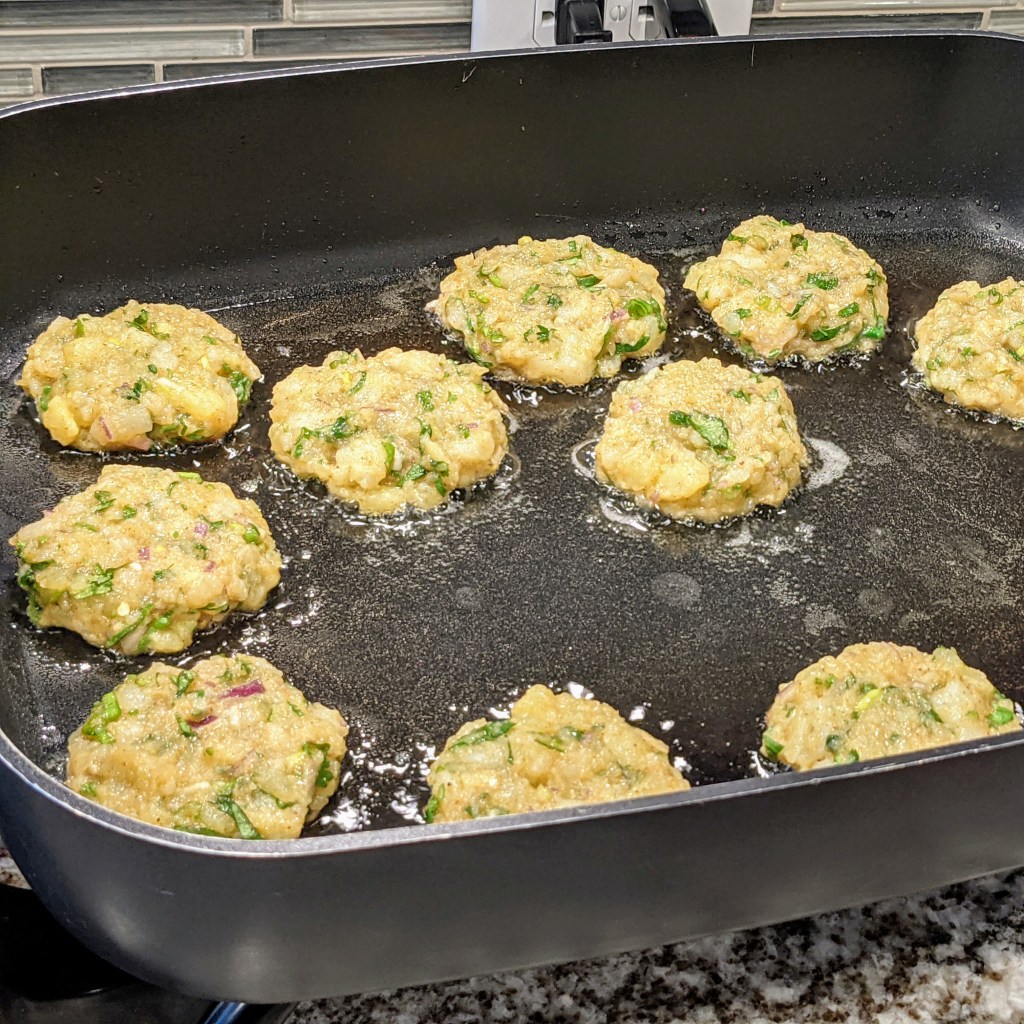 There are many different names out there for potato cakes as I make them below. I’ve heard them called potato chop, potato cutlet, kabab, and croquettes. I guess it depends on what part of the world you’re from. Let’s just keep this simple and call them “potato cakes.”