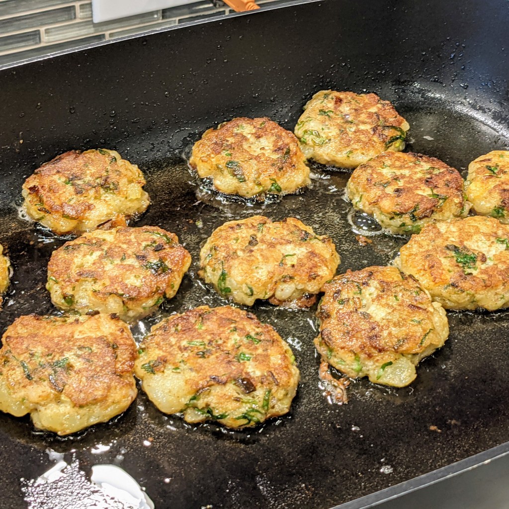 - 1/2 cup canola oil to fry the potato cakes