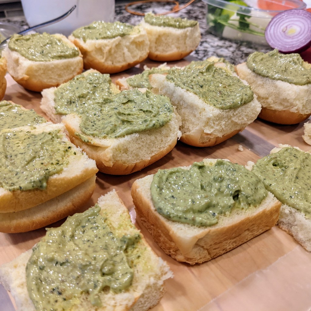 In this entree the kale pesto will be used in a sandwich made with Hawaiian dinner rolls. These rolls are fluffy and have a delicious hint of sweetness. I pick up a package when I get the chance. My son likes to eat them plain. I think they go great with homemade pesto or hummus.