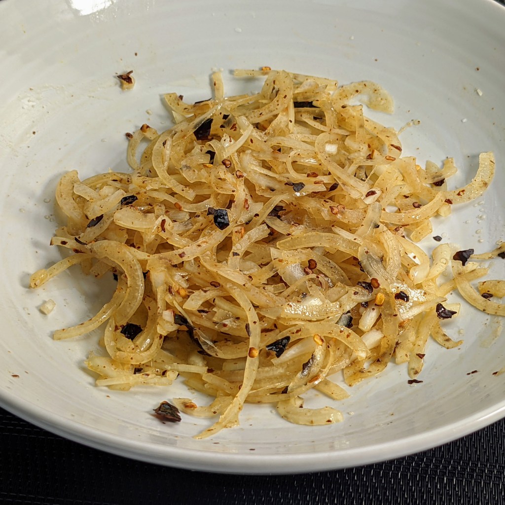 - 1/2 cup yellow onion thinly sliced