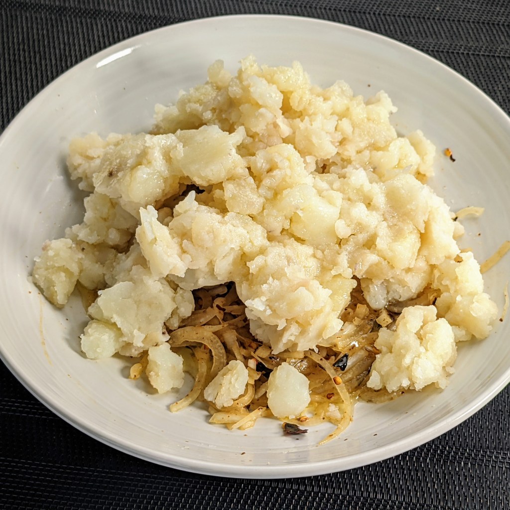 My love for potatoes came from my Mom. She made fried potatoes with spices to eat with rotis (homemade flour tortilla) for breakfast. She also made bhortas to go along with lentil dishes. Aloo bhorta was our comfort food.