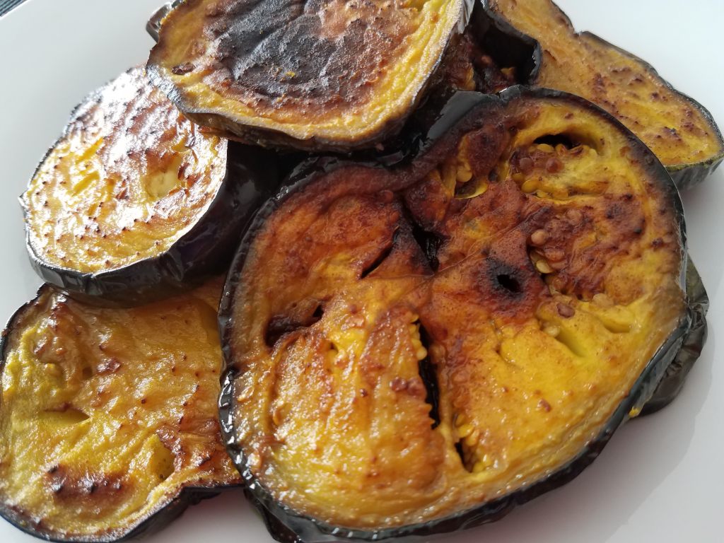 Begun bhaji or fried eggplant is one of my favorite fast dishes. It reminds me of my childhood home and my Mom. It is hard to explain the taste of this dish but it’s a classic Bengali dish and one of the very easiest to prepare. All you need to do is smear sliced eggplant in turmeric and salt, and fry them in a skillet until golden brown. You can use spices like cumin, chili powder, or garam masala to make it more interesting.