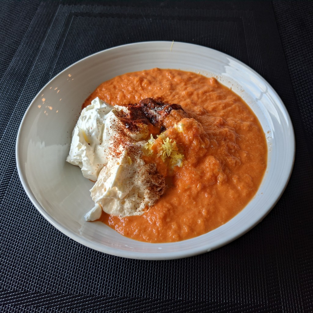 Place rest of the ingredients along with the pureed mixture in a mixing bowl. Use a whisk to mix all ingredients well together. Taste for seasoning.