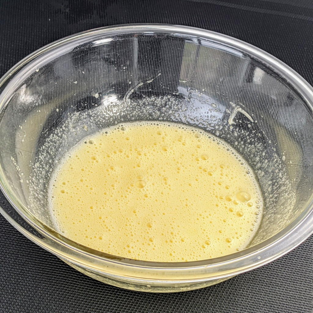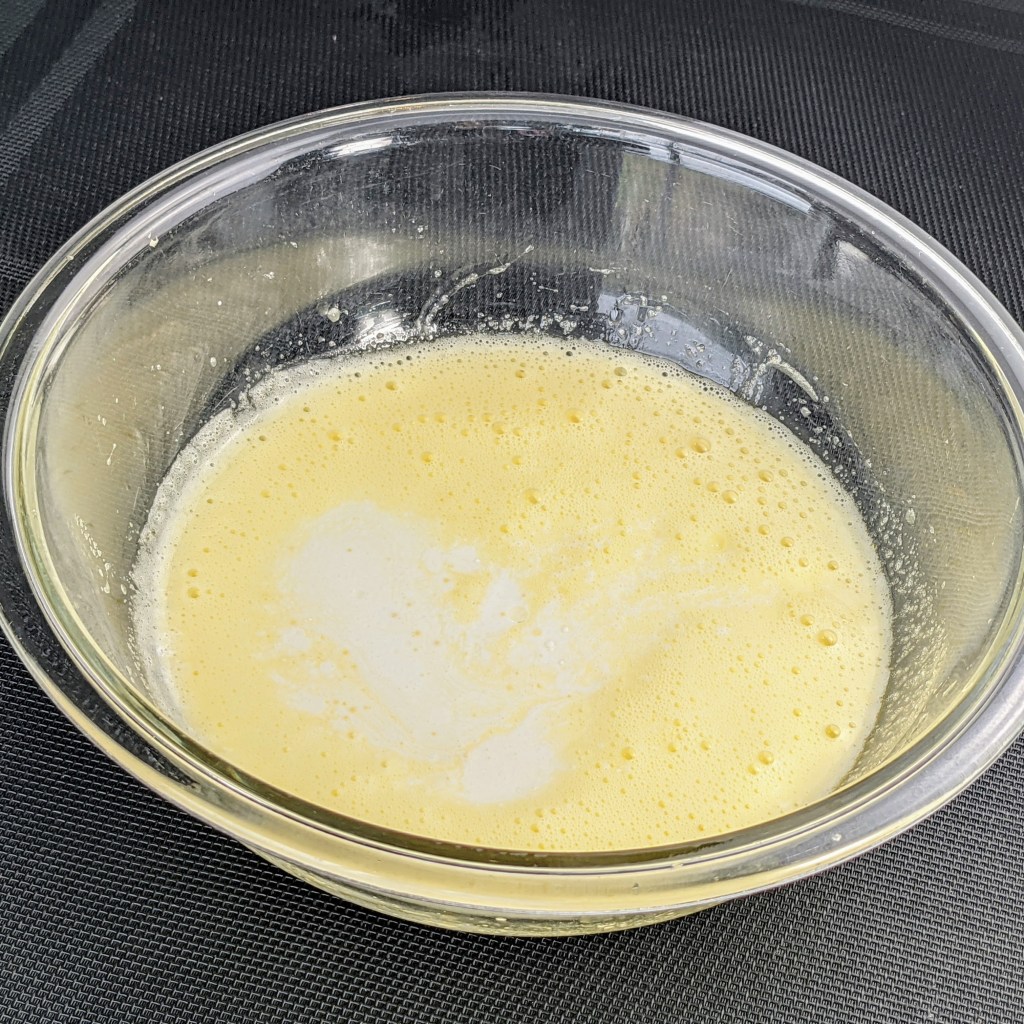 Place eggs, sugar, and oil in a mixing bowl. Beat all ingredients well with a handheld mixer. Add heavy cream and mix well.