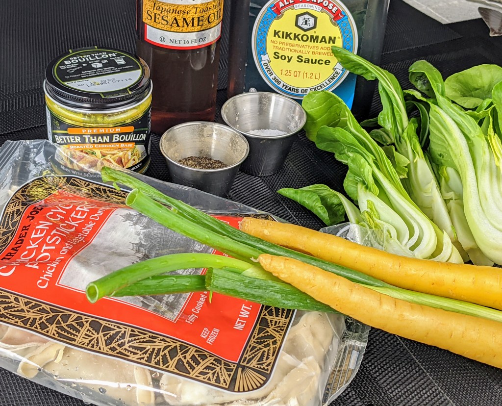 One thing that I love about this soup is that it comes together in minutes. You can use any types of potstickers and veggies that you like. The broth is easy to put together too.