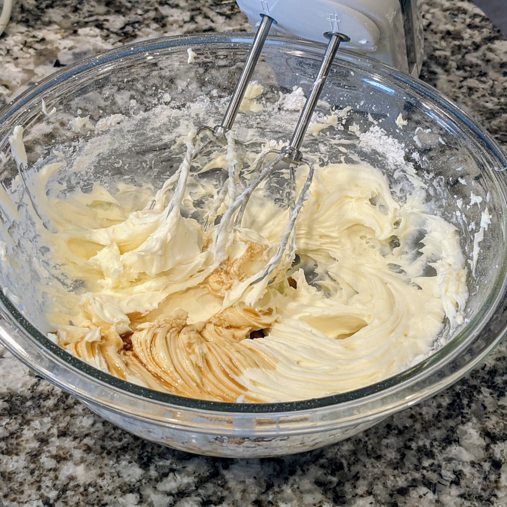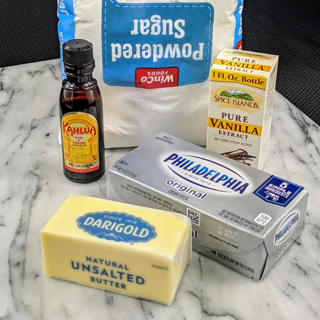 Using a whisk or mixture, beat together butter and cream cheese till light and fluffy with no lumps. Slowly mix in powdered sugar. Mix till smooth and creamy. Fold in vanilla and coffee liqueur.