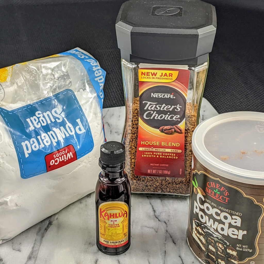 Dissolve coffee in hot water. Slowly add powdered sugar and cocoa. Stir until blended well. Stir in coffee liqueur.