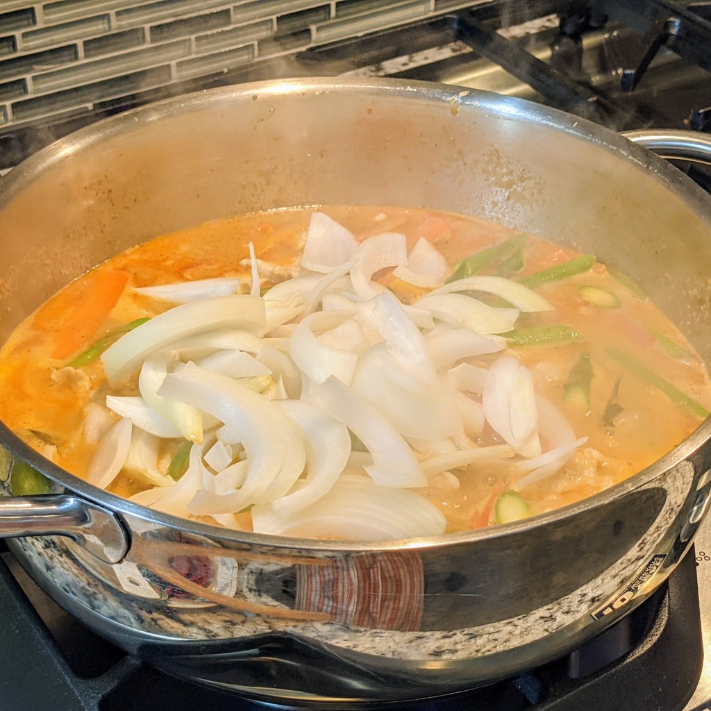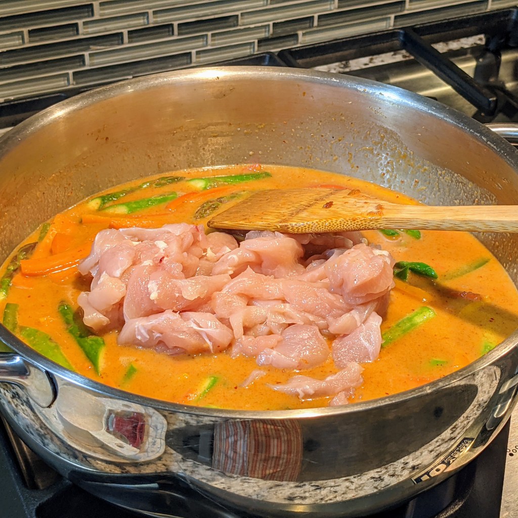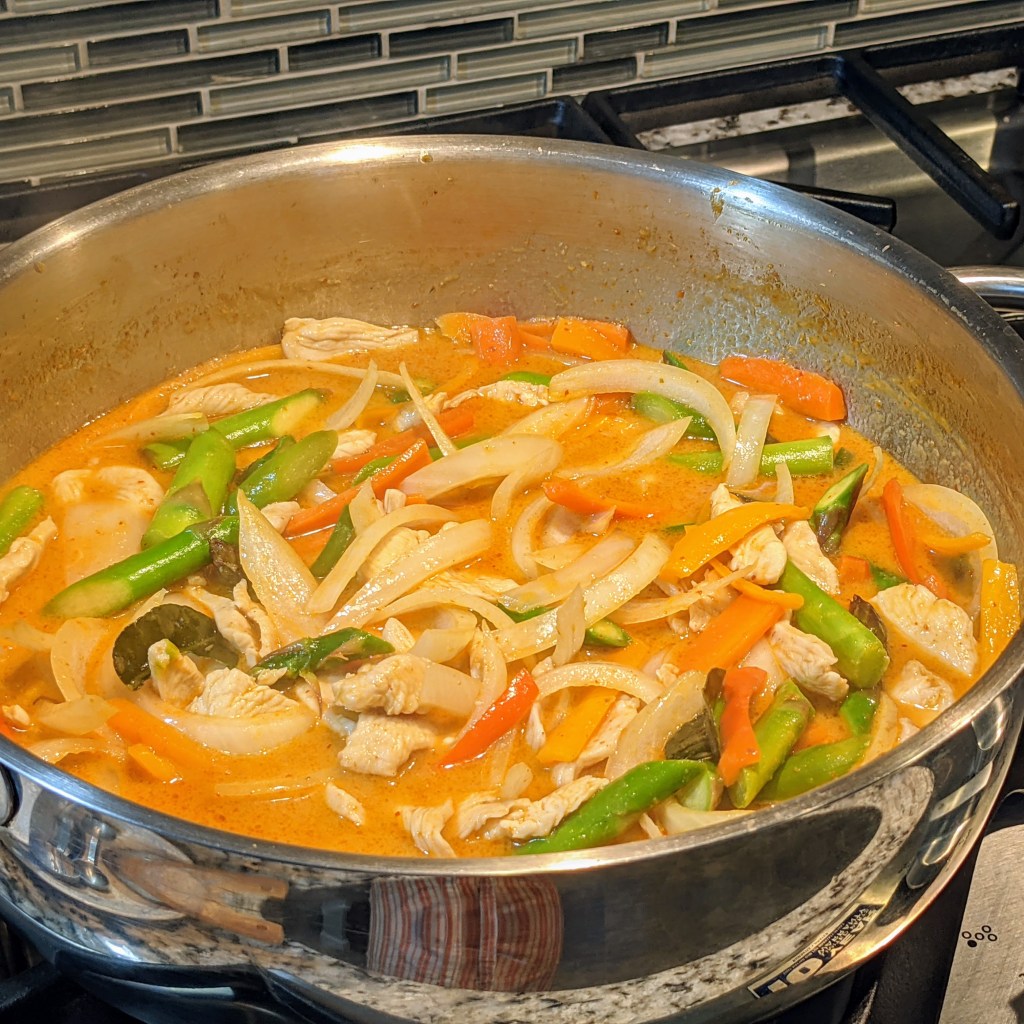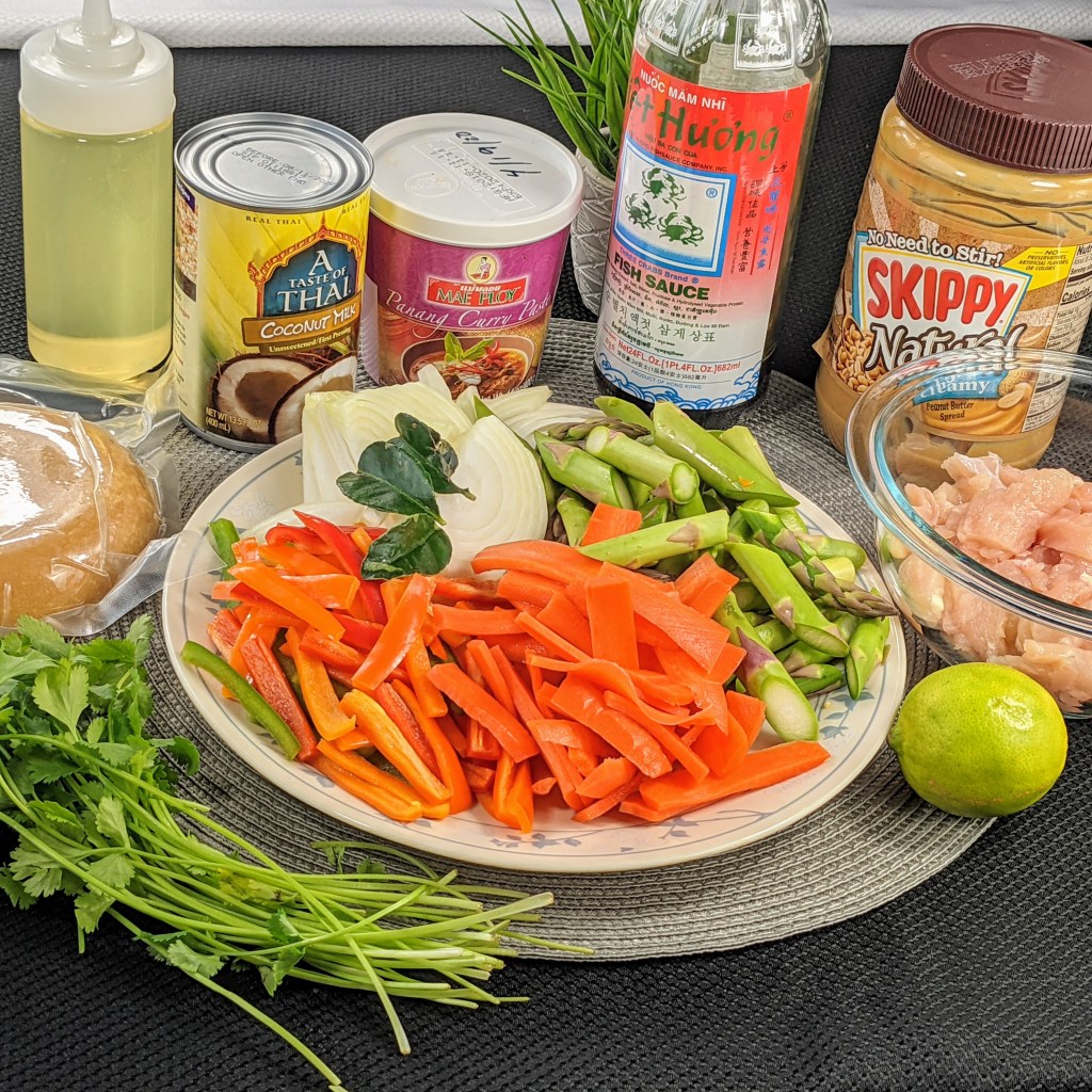 I am making my curry with chicken and vegetables but you could use tofu or tempeh along with vegetables. Serve this over cooked Thai jasmine rice for a wonderful dinner for any night of the week.
