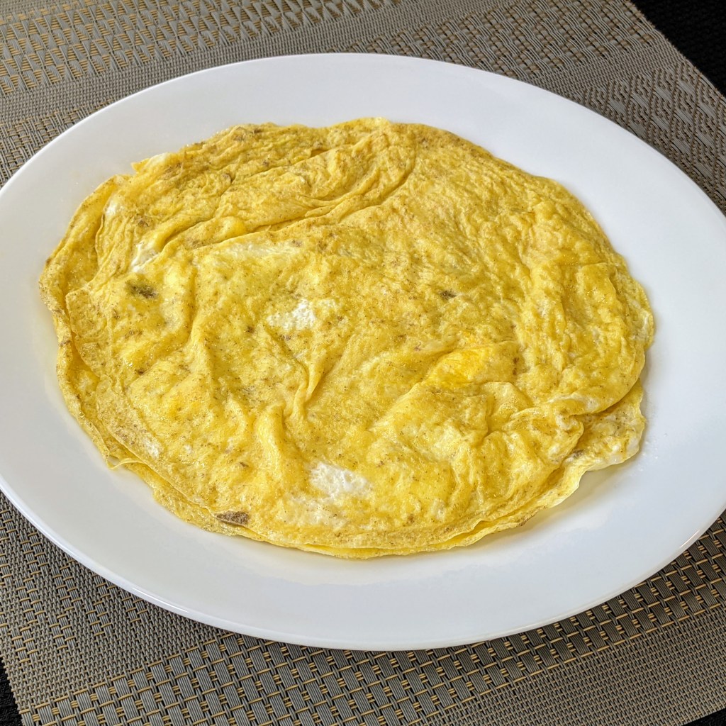 Beat all eggs ingredients except for the oil in a small bowl, then heat a small non-stick skillet over medium heat.