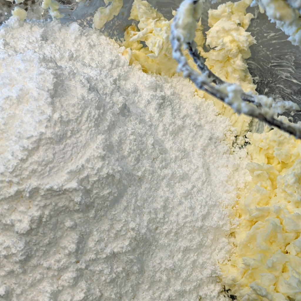 Cream butter, vanilla, salt, and cream cheese in a bowl and mix with an electric handheld or stand mixer. Make sure it is well-combined and no lumps are visible.