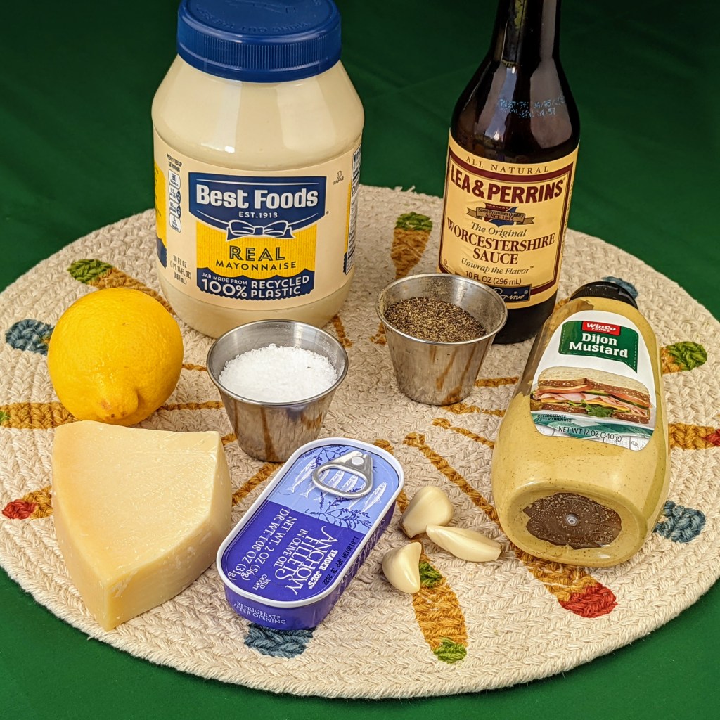 This version of the dressing is made with mayo, unlike raw eggs in the authentic dressing. Mayo is nice so you don’t have to worry about anyone getting sick from raw eggs. The balance of flavors is very nice in this recipe — the anchovies help a lot but don’t stand out as much as you’d think.