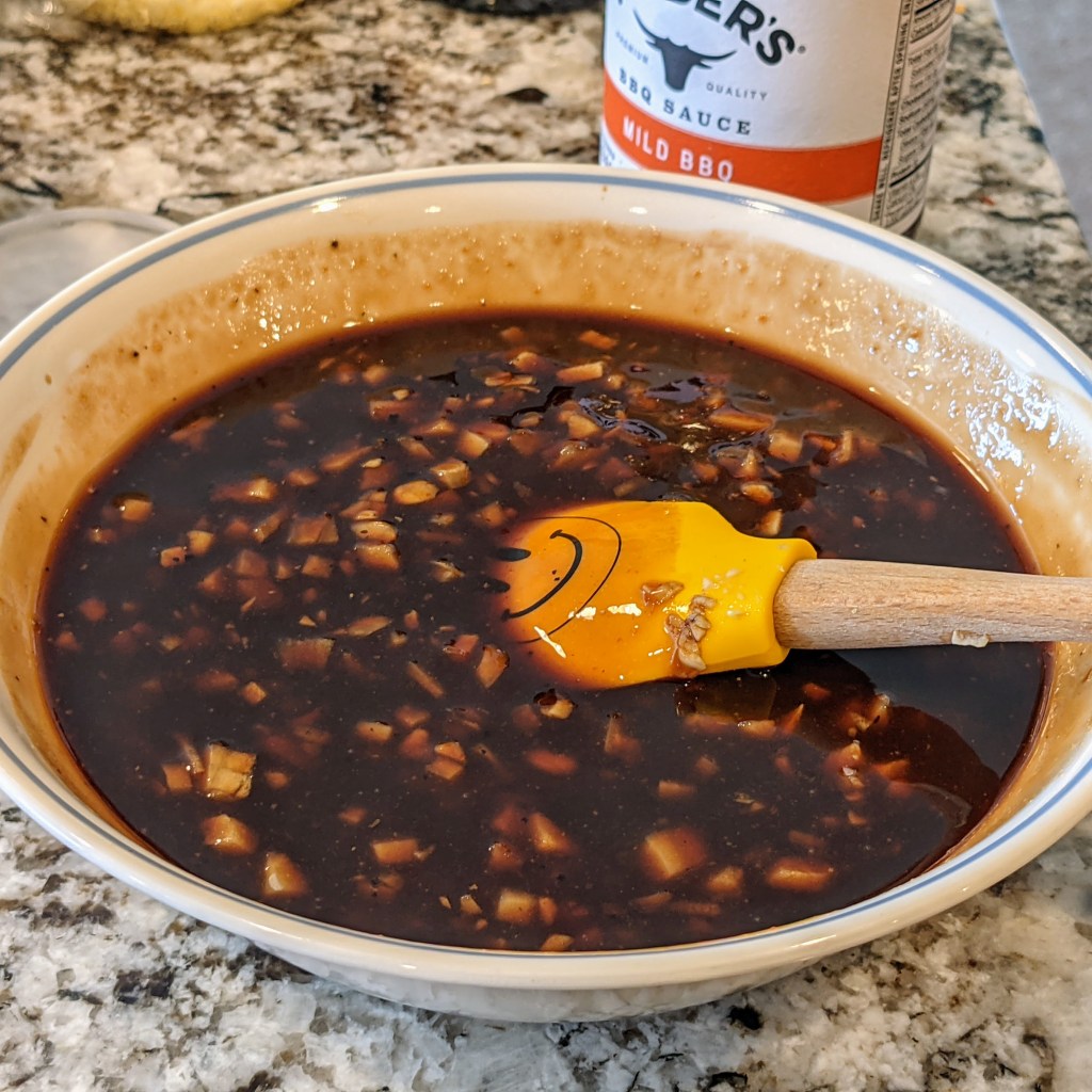 - 1/3 cup mild BBQ sauce (I used kinder)