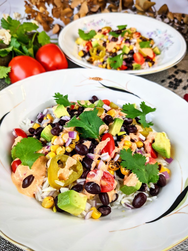 My Tex-Mex bowl is completely vegetarian, healthy, filling, and nutritious. It comes together fast once you have the ingredients. It’s full of fresh ingredients and incredible flavor from the chipotle chili sauce. I hope you make this sauce and tell me how you liked it!