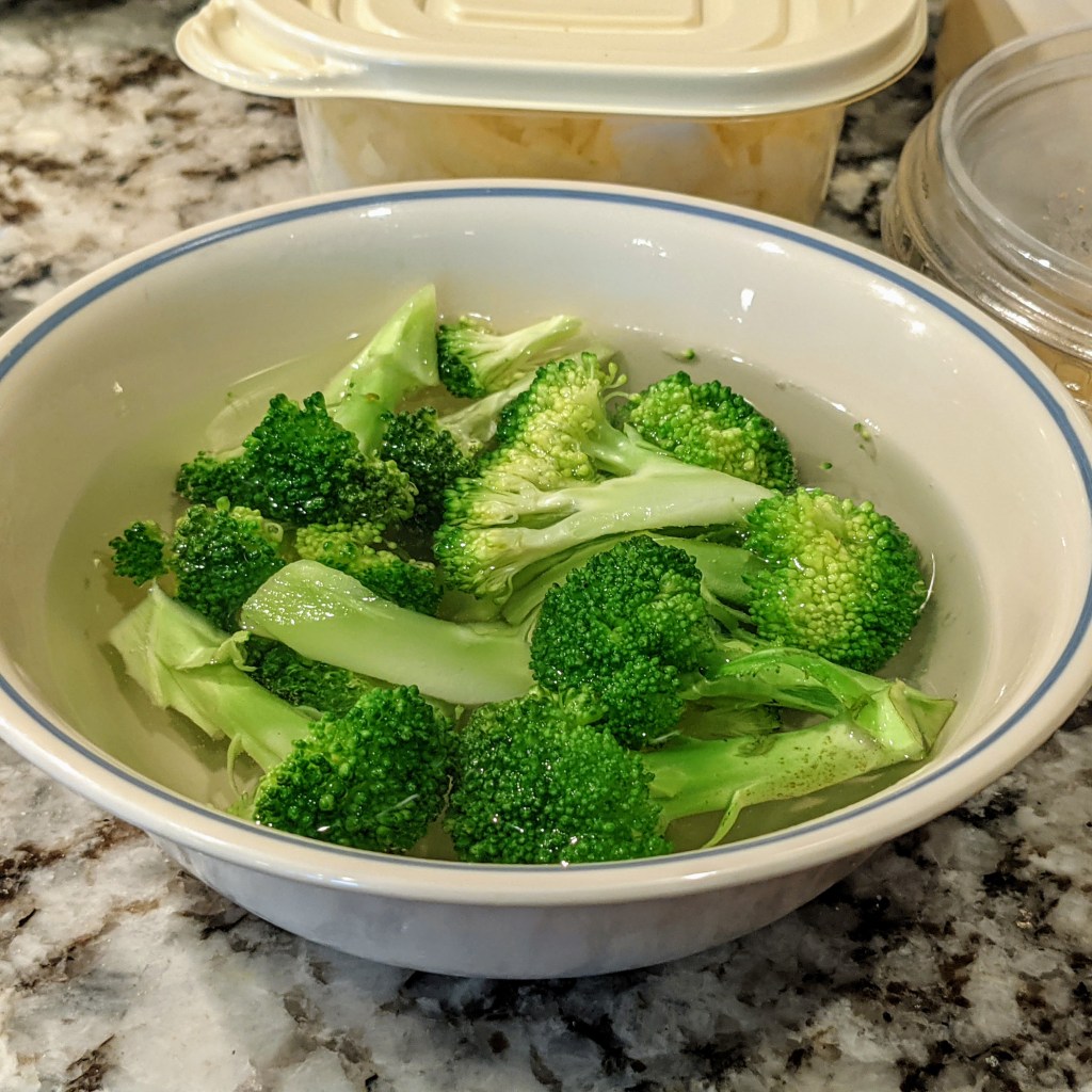 To blanch broccoli, place broccoli in a small bowl. Add 1 cup of water, then cook for a minute in a microwave. Stir and set aside. Drain well before adding to the noodles later.