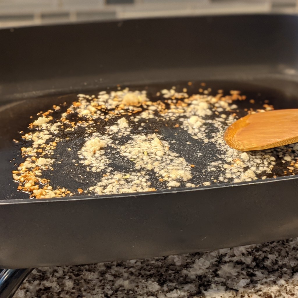 Heat oil in a large non-stick electric skillet over medium high heat. Add ginger and garlic, then cook for about 30 seconds or more until you see a bit of color.