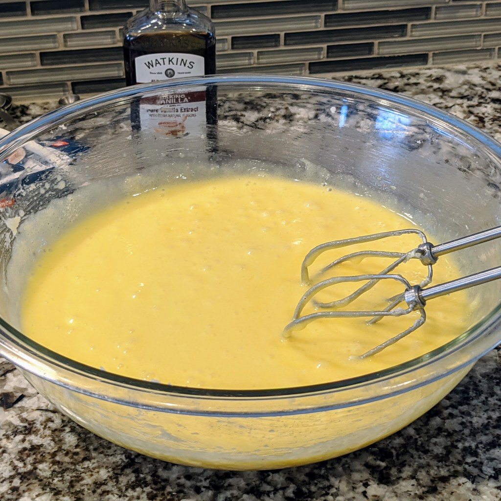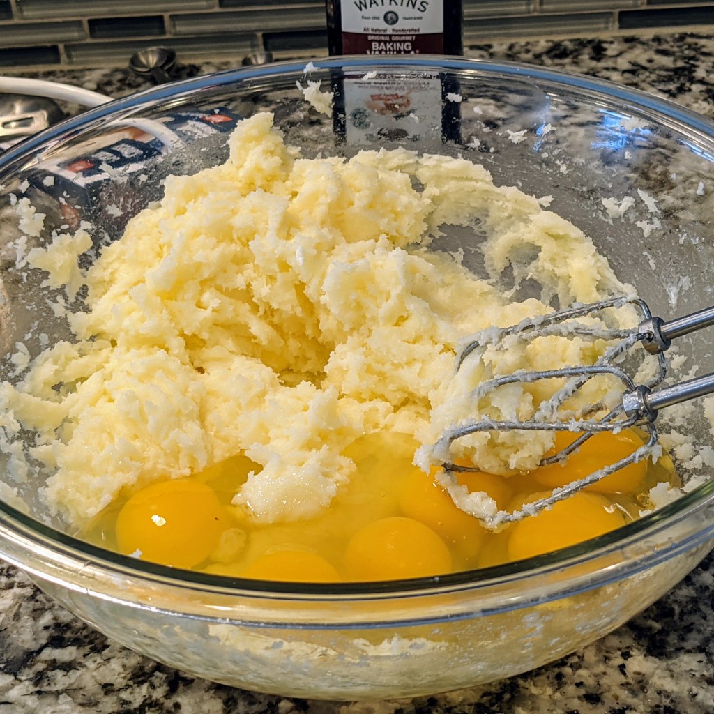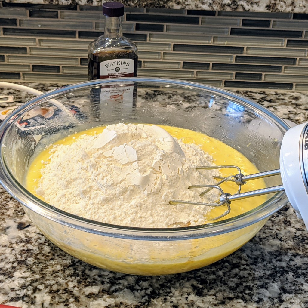 Add eggs and beat well. Then add vanilla, lemon zest, and lemon juice.