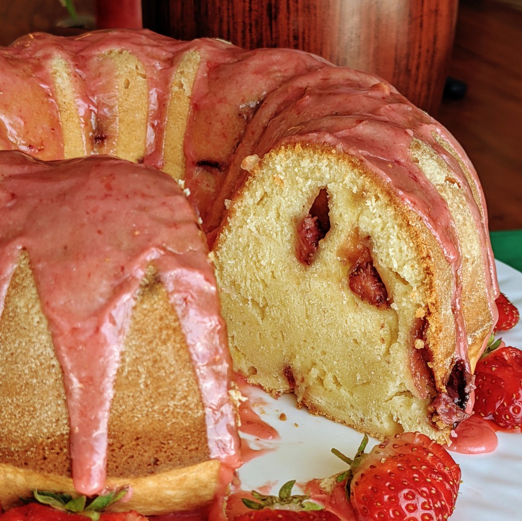 My family and I were very happy with the result. A key part is the strawberry drizzle over the cake. It’s simple to make but it takes the cake to a different level. This cake is super moist, dense, sweet and has just the right amount of tang from the lemon and strawberry.