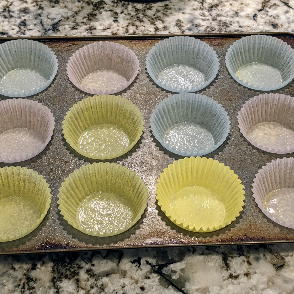 Line and grease 15 muffin cups, then set aside.