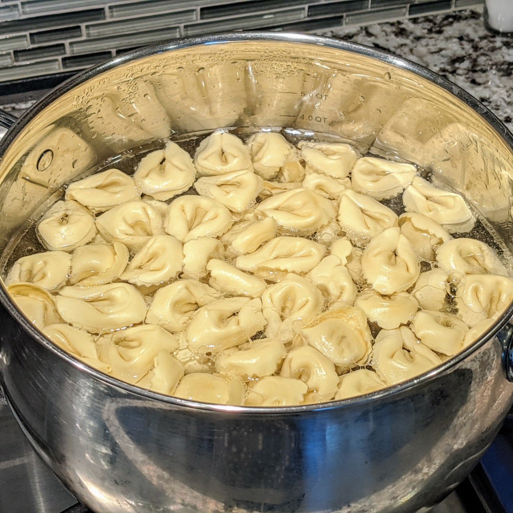 Meanwhile, Cook the tortellini in a large pot of boiling, salted, and a little oil until just done for around 3-4 minutes.