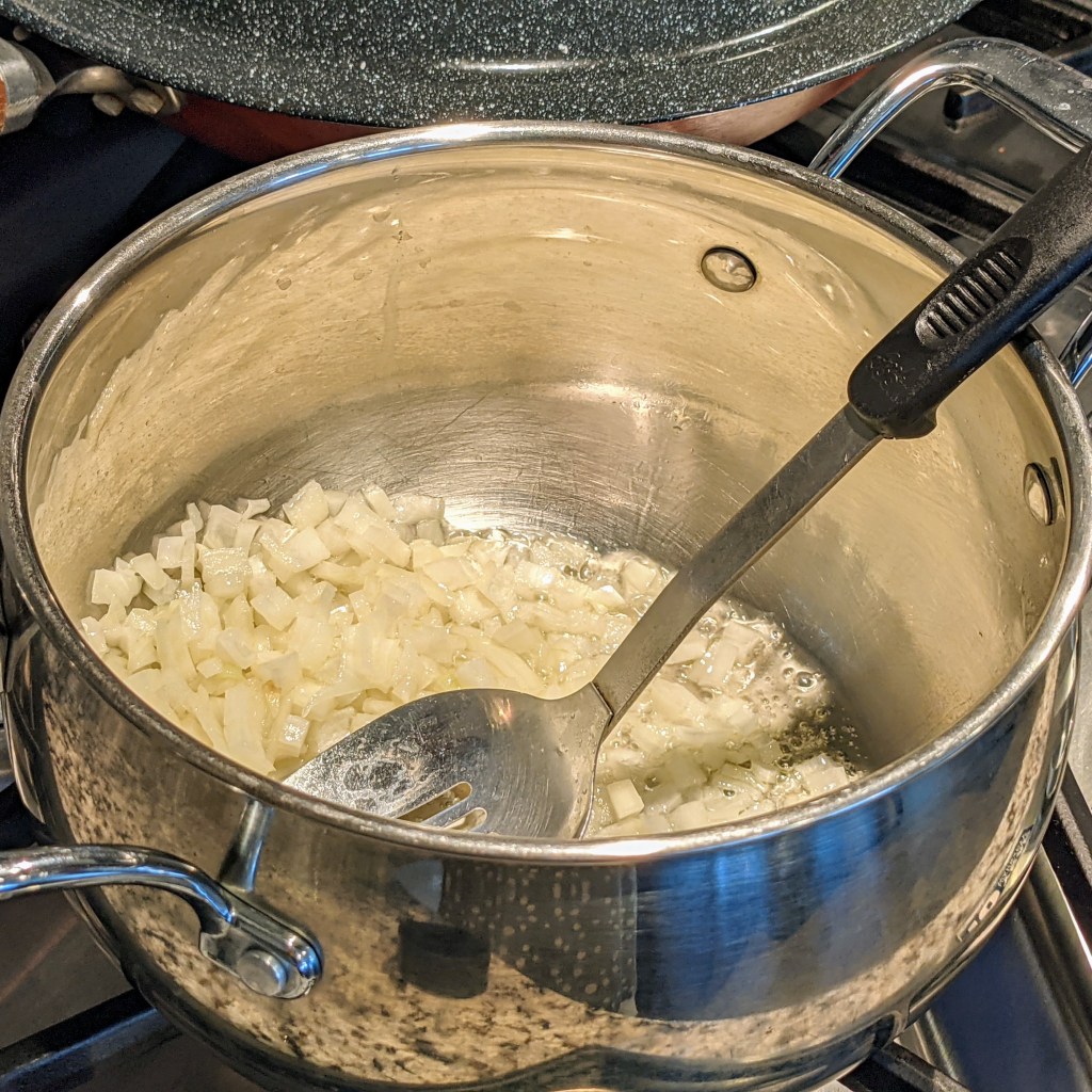 Heat oil in a large heavy bottom pot over medium-high heat. Add onion and cook until soft for around 3-5 minutes. Turn down the heat to medium-low.