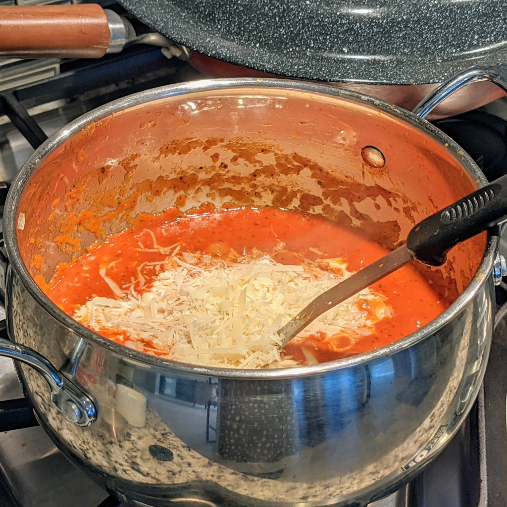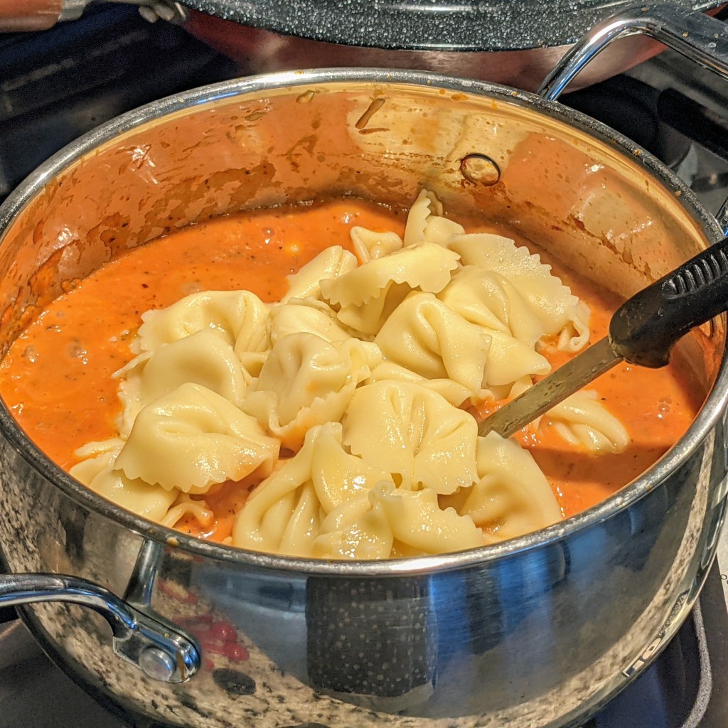 I had jarred pasta sauce on hand so I decided to make a creamy tomato sauce for my cheese tortellini. I almost never use off-the-shelf pasta sauce as it is. I always “doctor it up” to make it much better, and I hope I can inspire you to do the same.