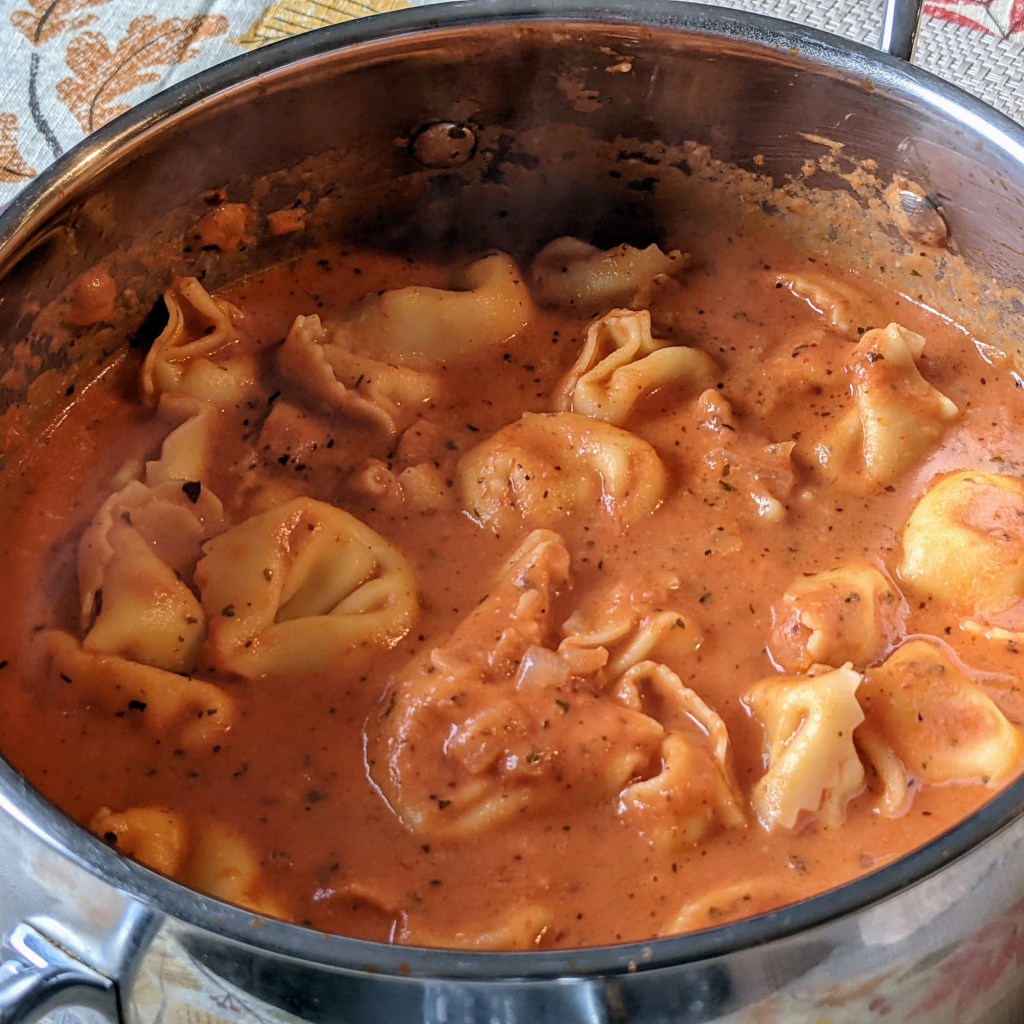 This was so quick and delicious, I had to share the recipe with you. You can use any meat- or mushroom-flavored tortellini too. I wanted to keep it vegetarian.