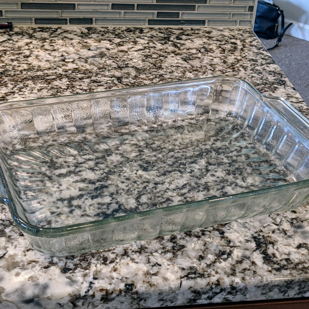 While the beef cooks, spray a 13 by 11-inch baking dish with non-stick cooking spray, and set aside.