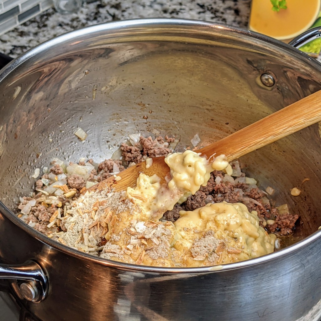 I also used dry onion soup mix to make it more flavorful, along with shredded Mexican cheddar cheese.