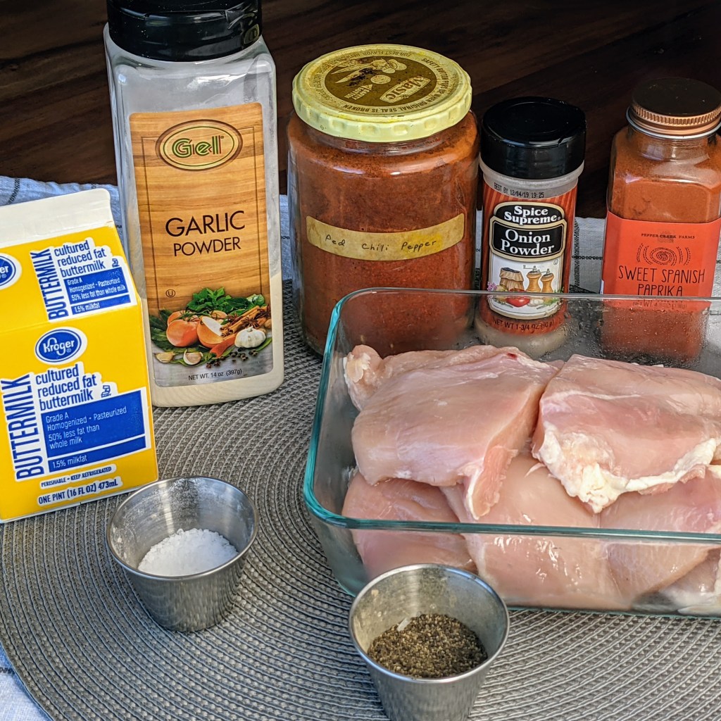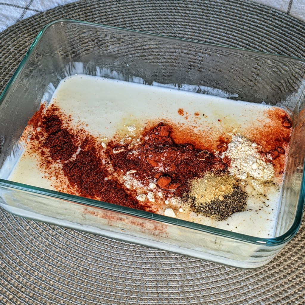 - 1 cup flour plus 2 tbsp. buttermilk marinade mix
